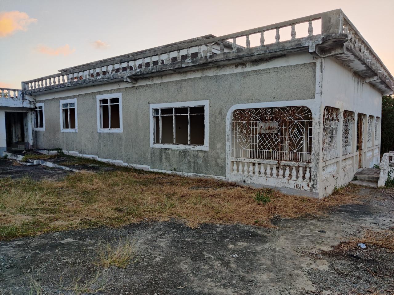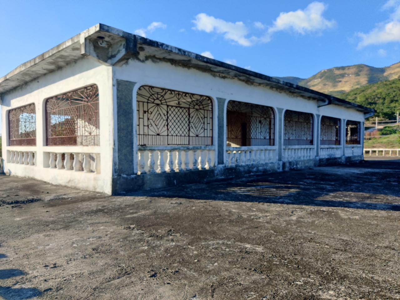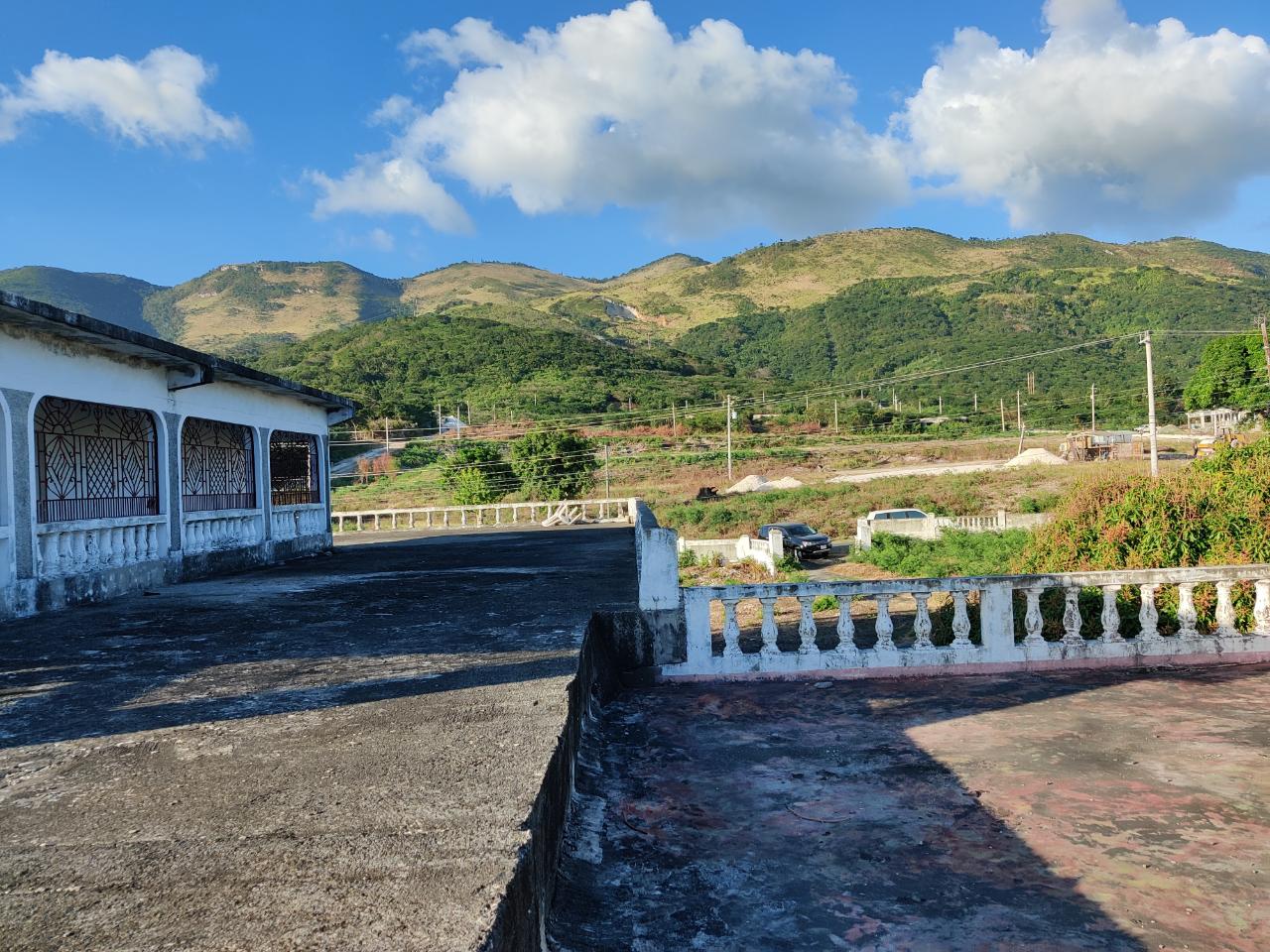 7 acres road front property with pond, sea and mountain views. Perfect for a private development between friends or an investment project. The building has been established as being structurally sound. Note that, Building consist of only the structure and would require all fixture and fittings to make it habitable. An opportunity to either increase or start up a solid real estate portfolio awaits the savvy investor. Call for viewing arrangements