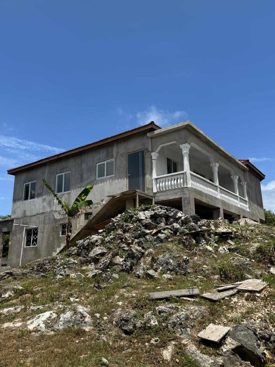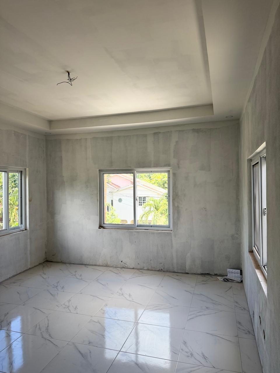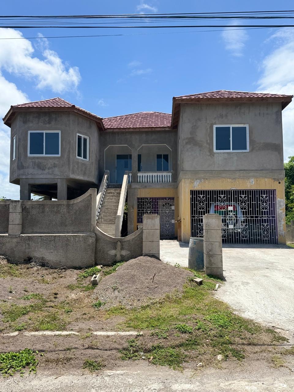 Location: Mount View Estate, St. Catherine This beautiful two-story home offers an exceptional opportunity to own a modern residence in the peaceful and highly desirable Mount View Estate. Whether you’re looking for your dream family home or a smart investment, this newly constructed property is packed with potential. Key Features: 2-Story Structure with Elevated Design, layout offering a grand stairway entrance and secure enclosed garage. Spacious Interior with natural lighting. Open-plan living areas with large windows providing excellent natural light and ventilation. Modern Finishes (In Progress)The home features gleaming porcelain tile flooring and stylish ceilings. Walls have been expertly skim-coated and await your finishing touch of paint and decor. Contemporary Kitchen Layout with ample counter space and center island design in a spacious kitchen area, ready for final cabinetry and fittings of your choice. Secure gated driveway, front balcony, elegant ironwork gates and a concrete perimeter wall provide security and curb appeal. Roofing & Windows: Installed Durable red metal roof tiles and sliding glass windows already in place. Just add your touch & move on in.