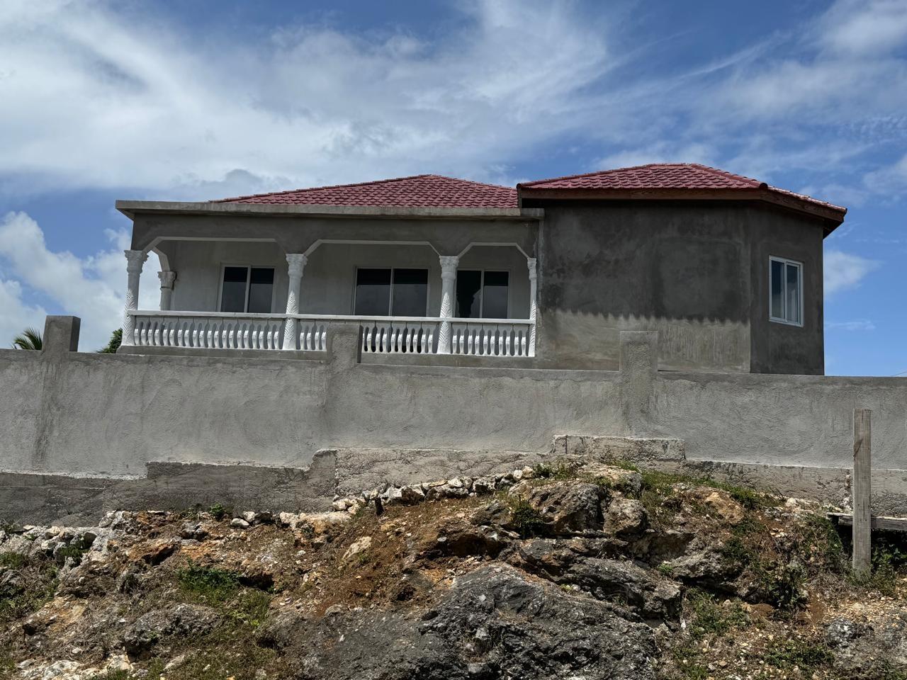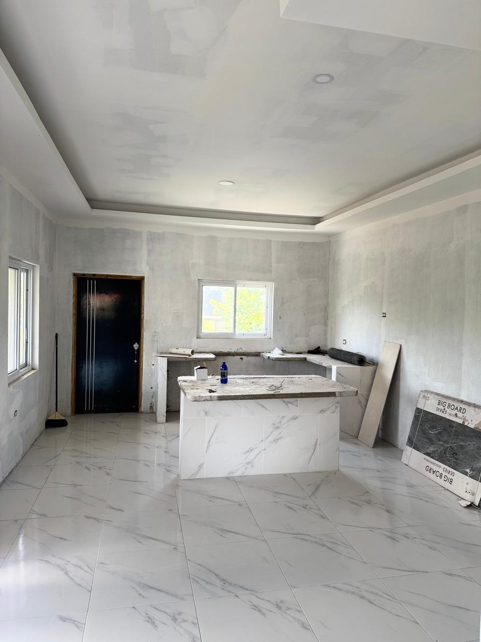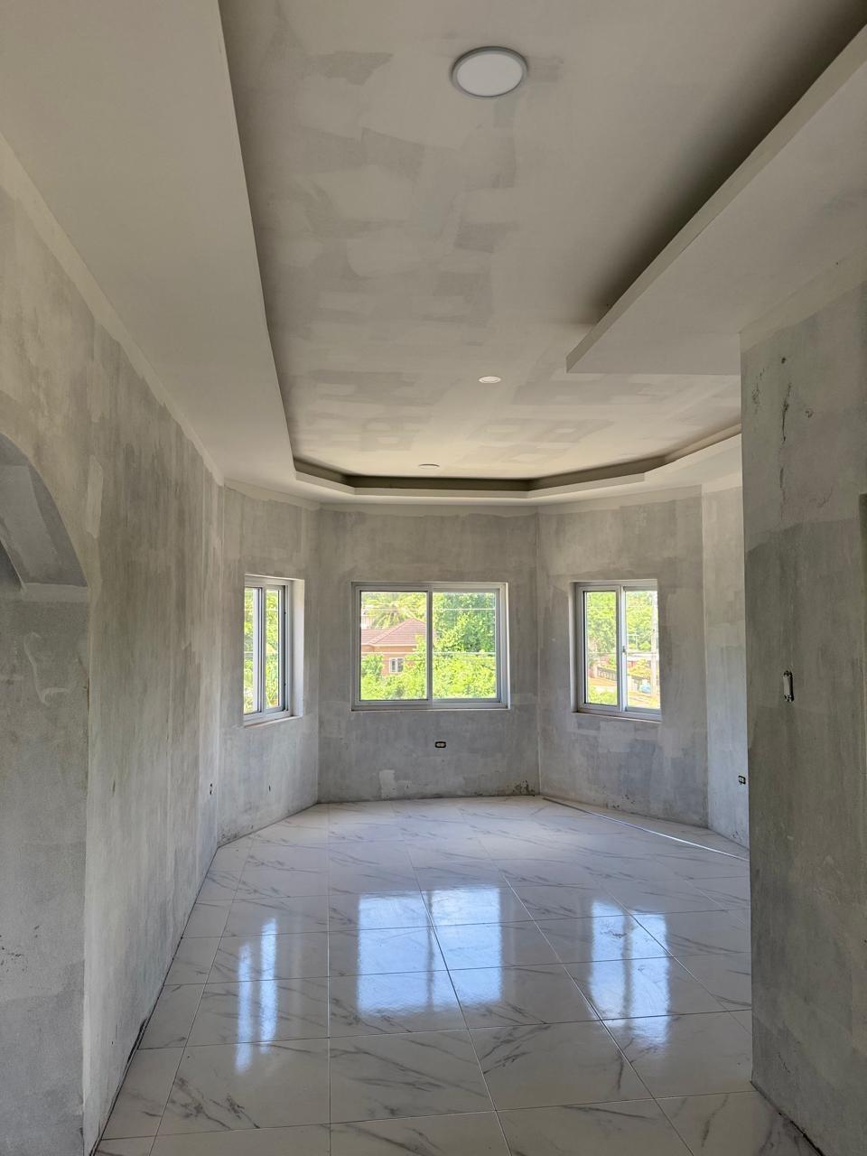 Location: Mount View Estate, St. Catherine This beautiful two-story home offers an exceptional opportunity to own a modern residence in the peaceful and highly desirable Mount View Estate. Whether you’re looking for your dream family home or a smart investment, this newly constructed property is packed with potential. Key Features: 2-Story Structure with Elevated Design, layout offering a grand stairway entrance and secure enclosed garage. Spacious Interior with natural lighting. Open-plan living areas with large windows providing excellent natural light and ventilation. Modern Finishes (In Progress)The home features gleaming porcelain tile flooring and stylish ceilings. Walls have been expertly skim-coated and await your finishing touch of paint and decor. Contemporary Kitchen Layout with ample counter space and center island design in a spacious kitchen area, ready for final cabinetry and fittings of your choice. Secure gated driveway, front balcony, elegant ironwork gates and a concrete perimeter wall provide security and curb appeal. Roofing & Windows: Installed Durable red metal roof tiles and sliding glass windows already in place. Just add your touch & move on in.
